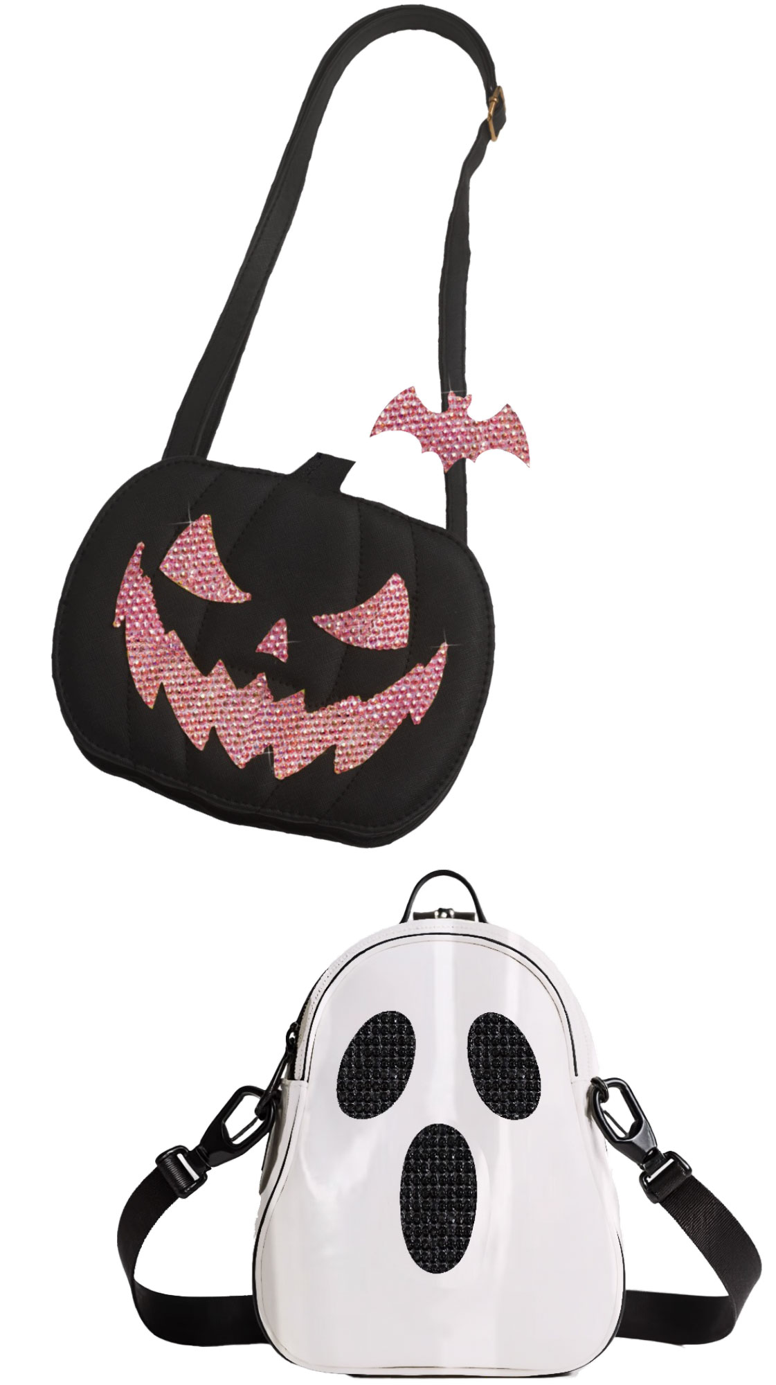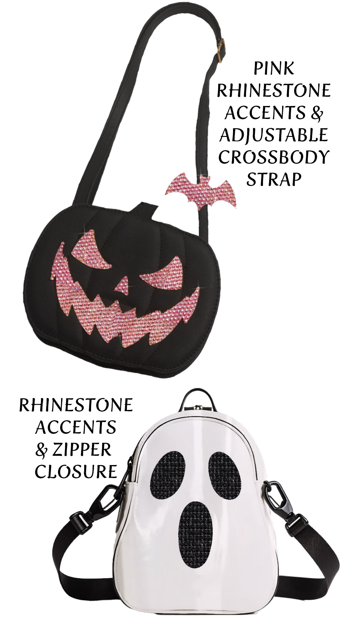 - 96953KP Black Pumpkin Bag w/Pink Rhinestone Accents & Adjustable Crossbody Strap